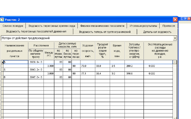 Рис.2.9 Ведомость перегонных показателей движения после реконструкции