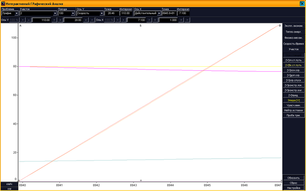 Согласно тяговым расчетам основные показатели, такие как: время хода, средняя скорость по участку, процент реализации скорости, расход топлива требовали улучшения, что и было достигнуто при проектировании реконструкции пути. Была запроектирована подъемка пути на 50см, смена стрелочного перевода на станции Б, таким образом повысив скорость на 8943км пк3 до 80км/ч. Этих мероприятий хватило для того что бы: