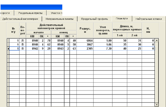 Реконструкция продольного профиля пути была выполнена с помощью программы Doroga_ocx.