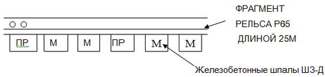 где М. – на данной шпале узел скрепления ЖБР-65Ш установлен и закреплён в монтажном положении, ПР. - на данной шпале узел скрепления ЖБР-65Ш установлен и закреплён в проектном положении