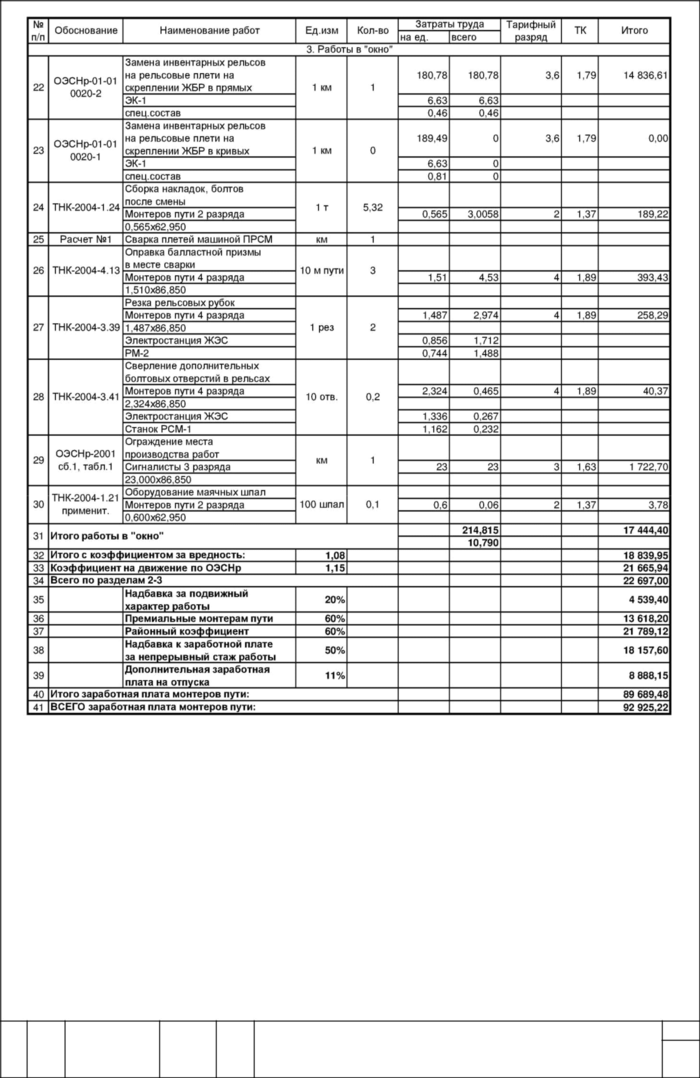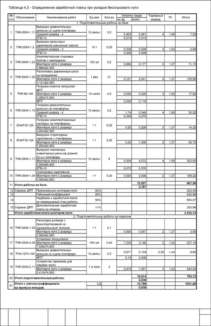 Определние расходов на заработную плату монтерам пути при укладке бесстыкового пути выполнено на основании п .3.4 и представлено в виде таблицы 4.3