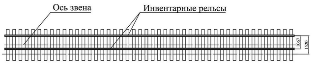 При сборке звеньев РШР с асимметричными железобетонными шпалами устанавливаются два инвентарных рельса на подрельсовые площадки колеи 1067 мм (рисунок 3.1). Строповка звена осуществляется с помощью модернизированной траверсы ТС.