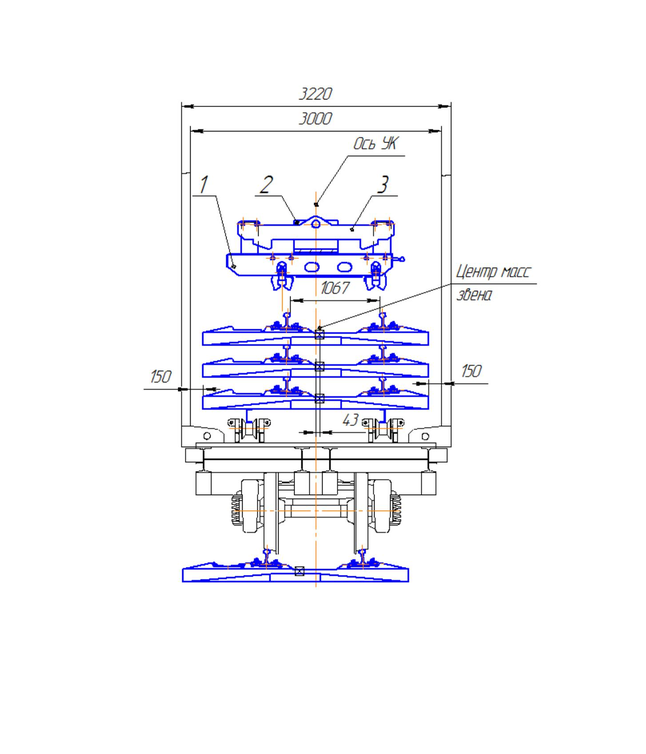 1 – травкрса ТС, 2 – траверса путеукладочного крана УК, 3 – грузозахватное устройство УКС-25/9-18