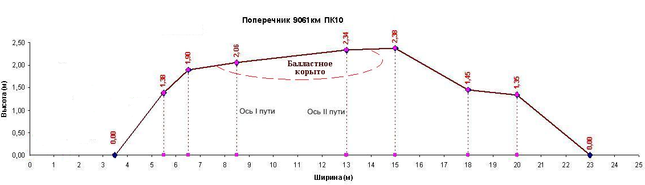 Рис. 2.2. Схематичный поперечный профиль земляного полотна 9061 км ПК 10