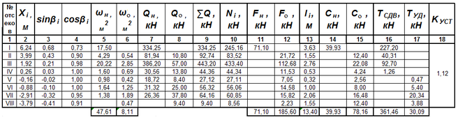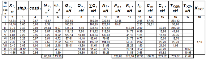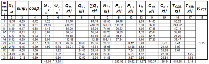 Таблица 4.7- Расчет коэффициента устойчивости откоса насыпи по кривой смещения А. Радиус кривой R1 = 9,18 м