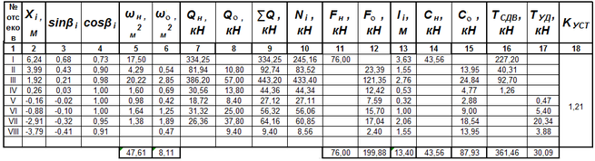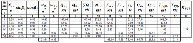 Таблица 4.4-Расчет коэффициента устойчивости откоса насыпи по кривой смещения А. Радиус кривой R1 = 16,93 м