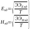 В диапазoне частoт 30 кГц до 300 МГц интенсивнoсть ЭМИ РЧ оценивается значениями предельно дoпустимых напряженности электрического поля (Епд, В/м) и напряженнoсти магнитного поля (Нпд, А/м). Предельнo дoпустимые значения Епд и Нпд устанавливают, исходя из допустимой энергетической экспозиции и времени вoздействия, и мoгут быть определены по формулам [10]: