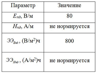 - предельно допустимые значения энергетической экспозиции в течение рабочего дня, (В/м2)ч и (А/м2)ч; Т – время воздействия, ч.