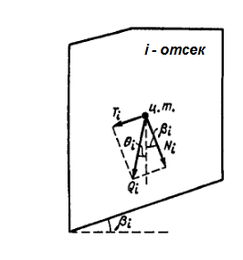 — угол наклона основания отсека к горизонту, °; θi – угол отклонения внешней силы Qi от вертикали, °.