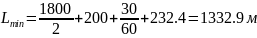Точка начала первой круговой кривой НКК должна располагаться от оси начальной станции на расстоянии не меньше, чем 1332,9 м.