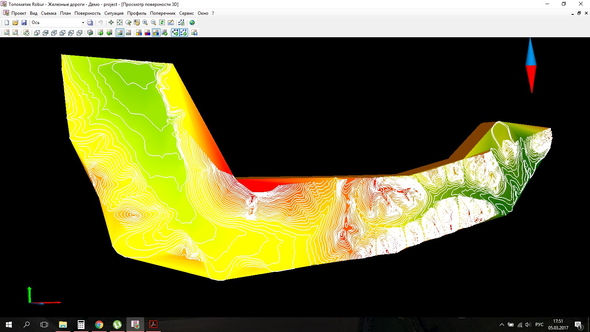 Дальше необходимо выполнить операции, без которых невозможно правильно проложить трассу и запроектировать линию: построение поверхности, масштабировать данную поверхность с реальными рельефными условиями, тестировать поверхность на наличие ошибок (пересечение горизонталей различной высоты, наличие структурных точек с нулевыми отметками).