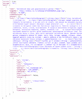 Рисунок 13 – конечный вид информации, полученной со «Справочника». На рисунке видно поле «info»