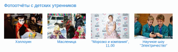 На рисунке 10 изображен виджет фотоотчётов для категории «Новогодние детские утренники»: