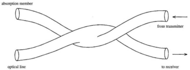 Y-образные сплиттеры, который представлен на рис.1.7(а), используются для ответвления/отделения светового потока в оптических маршрутах и в измерительной технике. Световой пучок может быть передан либо из волокна 1 в волокна 2 и 3, либо наоборот. Очень часто возникает необходимость произвести отделение части оптической мощности от направленного ответвителя. Как это реализуется, показано на рис.1.7(б). В этом случае отделение части светового потока пропорционально диаметрам волокна. Потери, возникающие в таких ответвителях, менее 0.5 дБ.