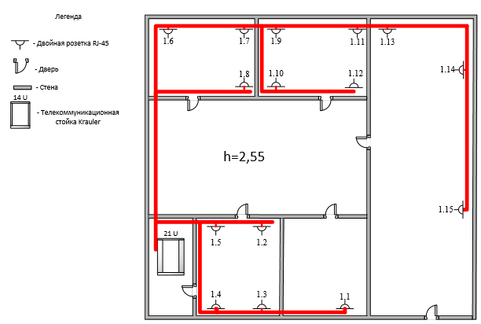 План помещения (рисунок 2.3) влияет на выбор топологии сети значительно сильнее, чем это может показаться на первый взгляд .
