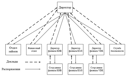 Рассмотрим организационно-штатную структуру подразделения. Возглавляет КПК директор. В состав предприятия входит 3 филиала. В каждом филиале имеется директор. В филиале KHBтакже имеются следующие отделы: Служба безопасности, финансовый отдел, отдел займов.