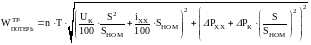 где UК – напряжение короткого замыкания, %, S – мощность, потребляемая трансформатором, кВА; SНОМ – номинальная мощность трансформатора, кВА, iХХ – ток холостого хода, %; n – количество трансформаторов; ΔPХХ – активные потери холостого хода, кВт; ΔPК – активные потери короткого замыкания, кВт; T – время работы, Т = 8760 ч.
