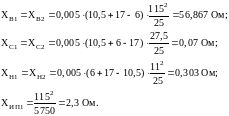 где UkВ-С = 10,5%, UkВ-Н = 17%, UkС-Н = 6%, - напряжение короткого замыкания между соответствующими обмотками; SТ = 25 МВА - номинальная мощность трансформатора; UСТ - напряжение ступени. Данные взяты из [4].