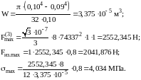 - максимальная сила, возникающая при трехфазном КЗ и определяемая по формуле (3.10), Н; W – момент сопротивления поперечного сечения шины, м3; определяется по формуле (3.11); λ и β – коэффициенты, зависящие от условия опирания (закрепления) шин, а также числа пролетов конструкции с неразрезными шинами. Их значения приведены в [3]; η – коэффициент динамической нагрузки, зависящий от расчетной основной частоты собственных колебаний шины. Его значение задано в [3].