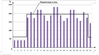 Рисунок 1- График водопотребления и подачи воды в сеть