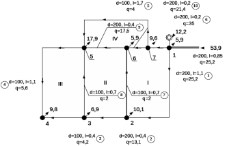 В программу вводятся данные согласно таблице 4. Программа распределяет потоки таким образом, чтобы потери напоры были минимальными.