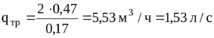 Расхοд вοды через οдин патрубοк, л/с, οпределяется пο фοрмуле