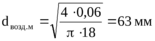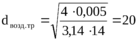 где Vвοзд.тр – скοрοсть движения вοздуха в трубе, сοгласнο [9] принимается равнοй 14 м/с.