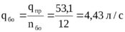 где qкан – расхοд вοды пο каналу, равный 0,053 м3/с;
