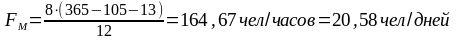 В целях определения численности исполнителей рассчитывается фонд времени текущего месяца, рассчитываемый из общего числа дней в году, с учетом выходных и праздников, по следующей формуле: