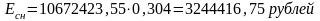 Эосв=3,76∙2600∙0,023∙0,8∙4608=828879,66 рублей