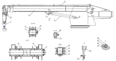 5-гидроцилиндр; 7,10,14,-оси; 6,13-втулки; 9,17-гайки; 11-шайба; 16-клин; 15,18-шайба; 19-обойма; 20-ось; 21-зажим; 23- кольцо; 25- винт.