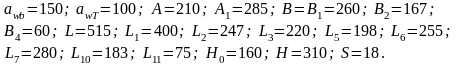 Габаритные и присоединительные размеры редуктора, мм: