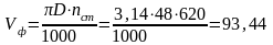 Расчетная скорость резания при рассверливании (4.9), м/мин: