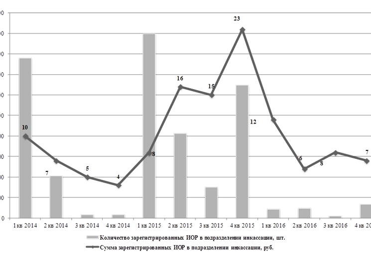 Приложение Е Динамика рисков в инкассации в разрезе количества и зарегистрированных сумм ущерба