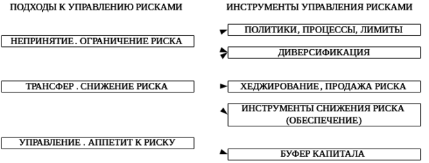 Рисунок 1.6 - Подходы и инструментарий управления банковскими рисками