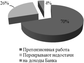 Излишки делятся на несколько составляющих: 70% относятся к претензионной работе Банка (возвращаются клиентам на банковские карты), 26% идут на урегулирование и перекрытие недостач, 4% относятся на доходы Банка по истечении срока исковой давности4. На рисунке 2.3 представлена разбивка [21].