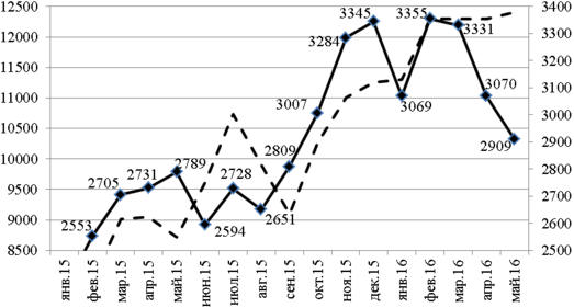 Рост количества инцидентов имеет прямую корреляцию с частотой перезагрузок УС денежной наличностью (штрих-пунктирная линия на рисунке 2.1). Так, за 2015 год количество перезагрузок УС денежной наличностью возросло в 2 раза, из-за роста ставки фондирования с 5,94% до 10,18%3.