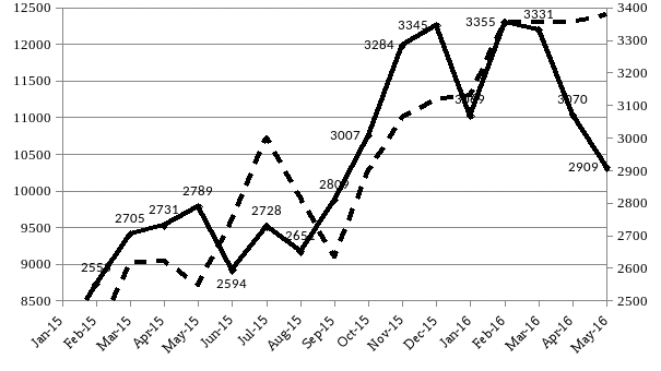 Рост количества инцидентов имеет прямую корреляцию с частотой перезагрузок УС денежной наличностью (штрих-пунктирная линия на рисунке 2.1). Так, за 2015 год количество перезагрузок УС денежной наличностью возросло в 2 раза, из-за роста ставки фондирования с 5,94% до 10,18%3.