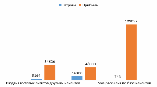 | Стимулирование сбыта, реклама | Раздача гостевых визитов друзьям клиентов | 1.07.2017 – 31.08.2017 | специалист по коммуникациям | 5 164 | 20 | 60 000 |