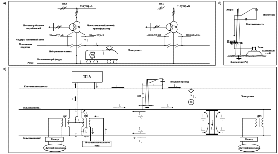 На рисунке 2.1 в) детально показан путь протекания обратного тягового тока