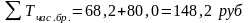 где Тчас.бр. – часовая тарифная ставка бригады, руб/ч; ΣКкор – коэффициент, учитывающий доплаты, надбавки и премию к заработной плате работников бригады, учитывая вероятность выездов в ночное время и праздничные дни, принимается: Ккор=1,95; tв – время на восстановление движения поездов, tв = 4 часа.