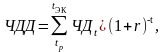 где ЧДt – чистый доход (ликвидируемый ущерб); r – норма дисконта; tр – срок окончания реализации проекта; tн – срок начала реализации проекта; tэк – срок окончания внедрения проекта (эксплуатации).