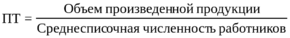 Показатель производительности труда (или показатель средней выработки одного работника– является отражением объёма продукции в выражении стоимостном, который приходится на одного работника в среднем. Расчёт может быть сделан по формуле: