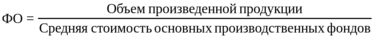 Фондоотдача (ФО) является отражением объёма продукции в стоимостном выражении, который производится на один рубль стоимости ОПФ (основных производственных фондов). Расчет производится по формуле: