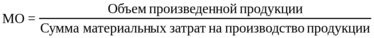 Материалоотдачей (МО) – характеризуется объём производимой продукции в стоимостном выражении, который приходится на рубль материальных затрат. Такие вычисления производятся по следующей формуле: