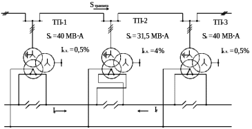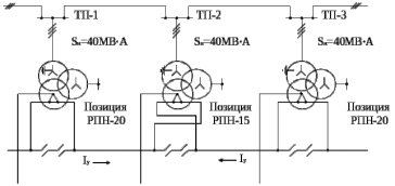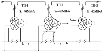 Большая часть потерь от уравнительных токов связана с режимом работы питающей линии, а также зависит от согласования регуляторов питающего напряжения (РПН) соседних подстанций. Величина небаланса напряжений на шинах