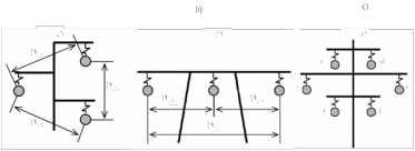 Рисунок 18 – Расположение проводов воздушных ЛЭП на опорах: а) –
