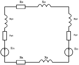 Рисунок 17 – Схема замещения участка электроснабжения Спасск-Дальний-Сибирцево