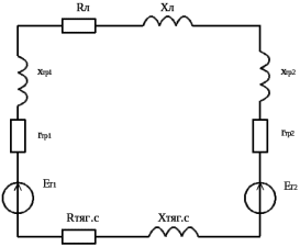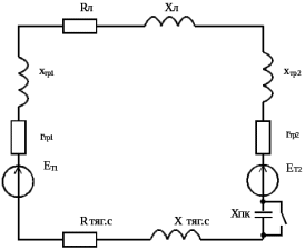 Рисунок 21 – Схема замещения участка электроснабжения Сибирцево - Уссурийск