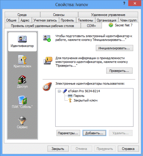 – «Идентификатор» – содержит средства управления персональными идентификаторами пользователя;